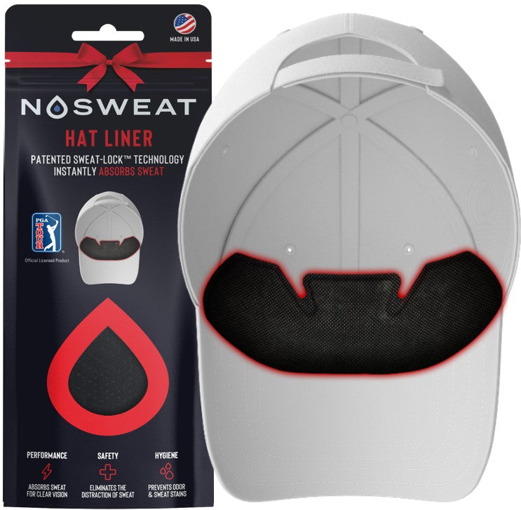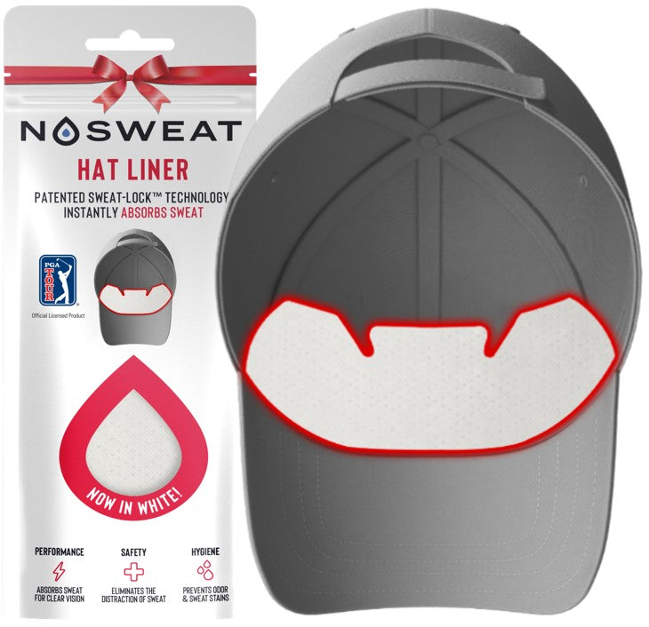 Introducing NoSweat®Golf Accessories Officially Licensed by the PGA TOUR.   Our Sweat Liners are the perfect accessory for Golf Hats, Trucker Hats and Visors, now in both black & white.  Our patented sweatlock liners are he ultimate disposable moisture-wicking performance liner and Golf Accessory. Simply stick it inside your favorite golf hat or visor and experience our patented SweatLock™ Technology. Designed to instantly absorb sweat, NoSweat® helps you stay cool and focused on your game. Say goodbye to sweat stains and discomfort, and hello to a more comfortable golfing experience. Try NoSweat® today and elevate your game to the next level!